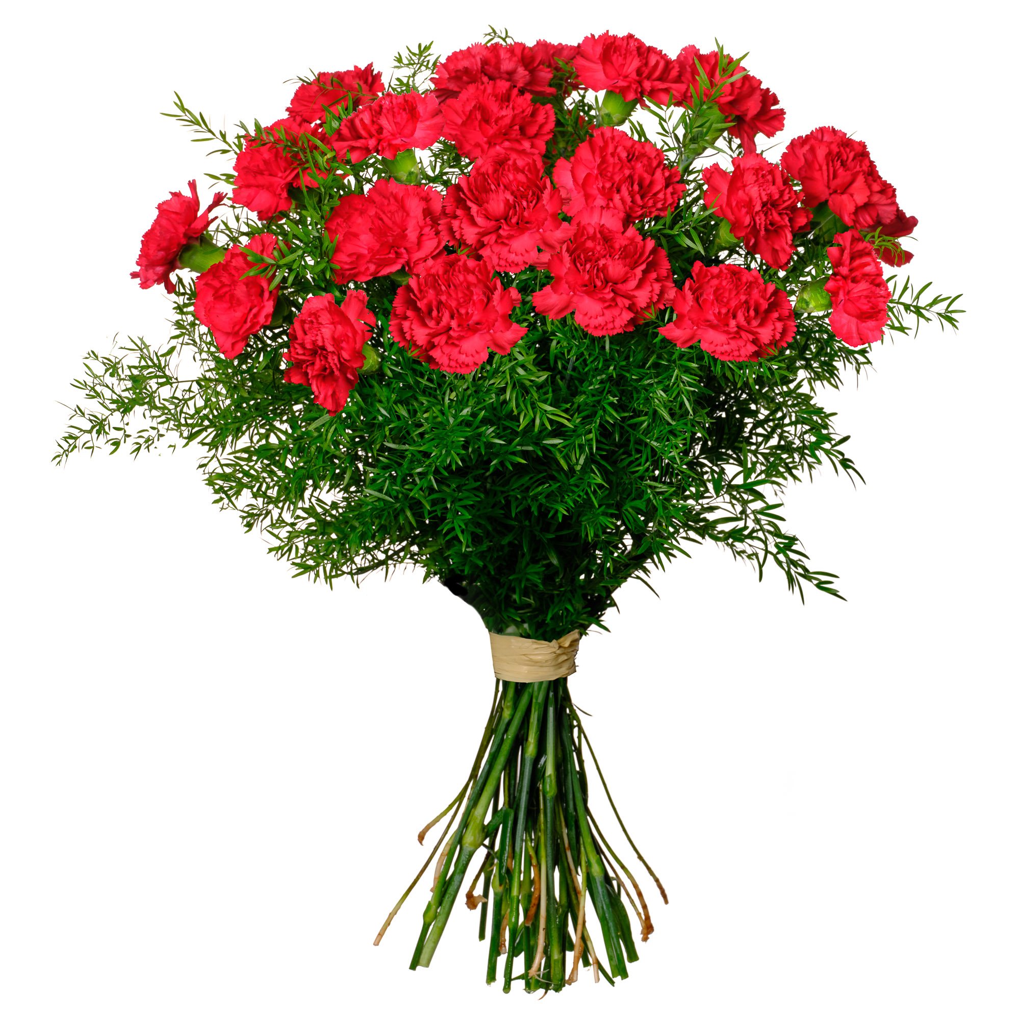 This radiant bouquet of red carnations, artfully accented with lush decorative greenery, creates a perfect harmony of vibrancy and elegance. The vivid hues of the blossoms beautifully contrast with the deep green fillers, resulting in a fresh and uplifting arrangement that brings a sense of cheer and positive energy to any space. Whether it's to celebrate a special achievement, express heartfelt congratulations, or simply brighten someone's day, this bouquet is an ideal choice. We deliver on the same day during weekdays, with the option to select your exact delivery time for added convenience. All our bouquets are professionally arranged by experienced florists, and you can count on reliable delivery with email confirmation.
